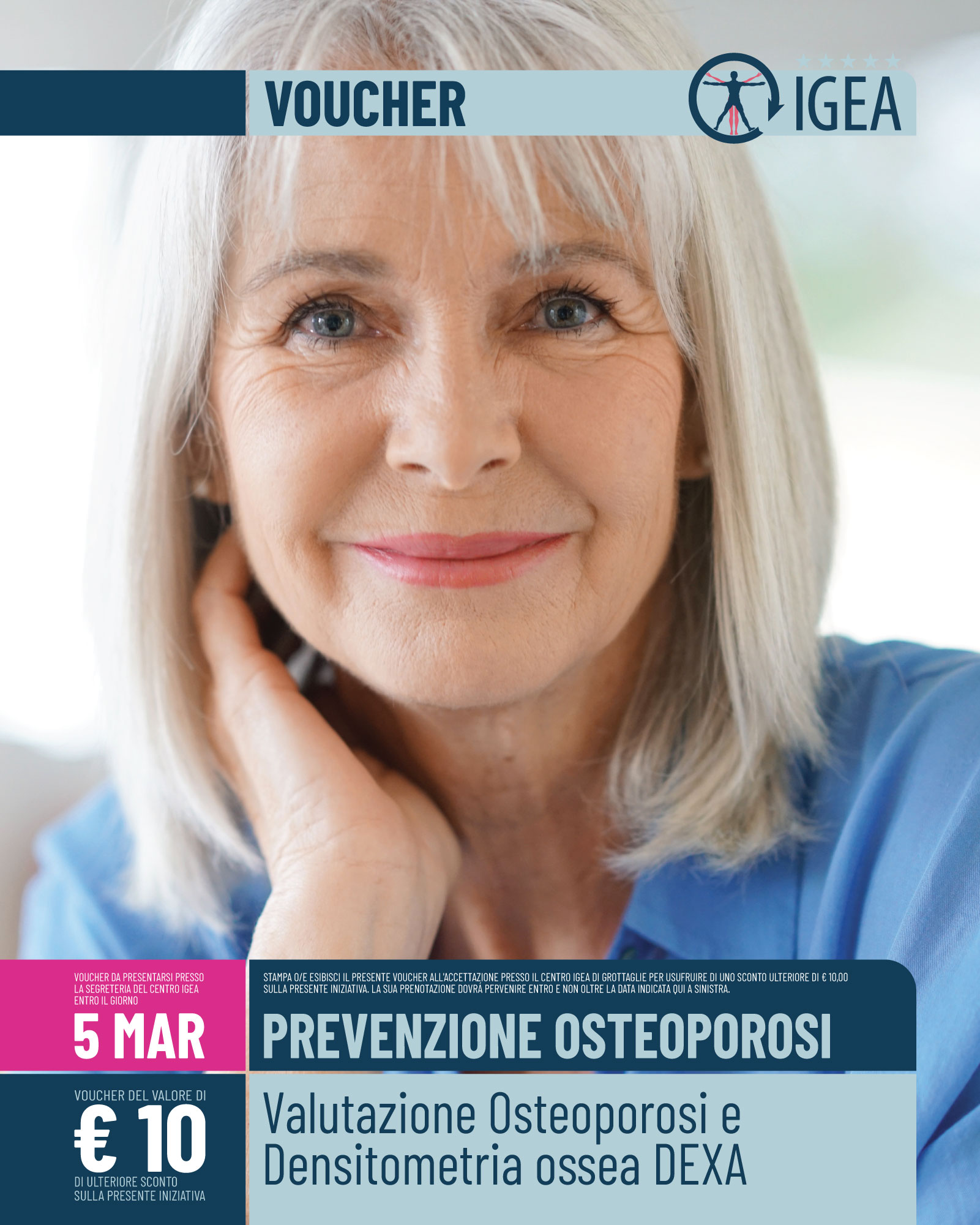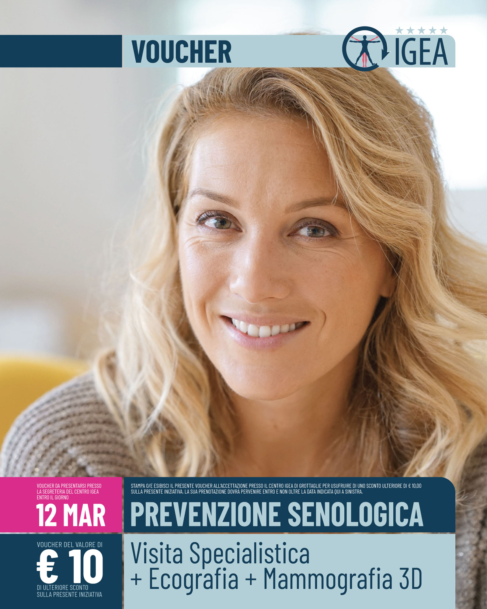 Stampa ed esibisci questo Voucher presso l’accettazione del Centro Igea in via Traranto, 73 a Grottaglie, per usufruire di un ulteriore sconto di € 10,00